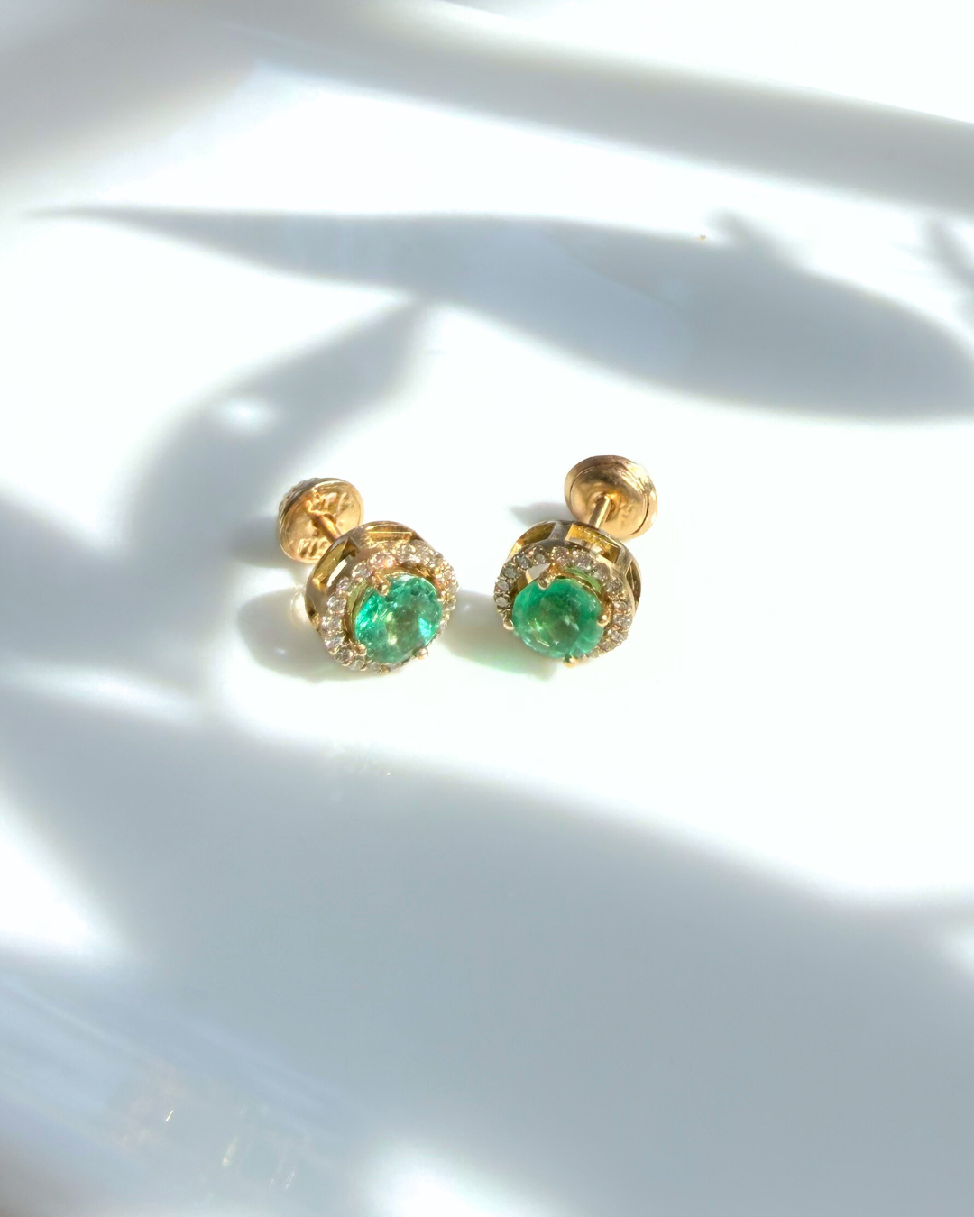 Par de aretes de alta joyería elaborados en oro de 18 kilates, protagonizados por esmeraldas colombianas seleccionadas por su intensidad de color y equilibrio natural.