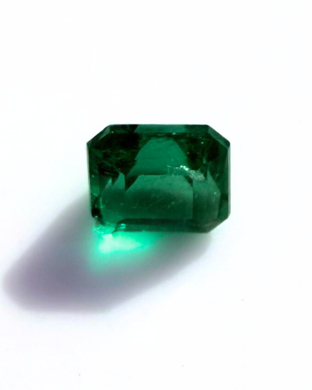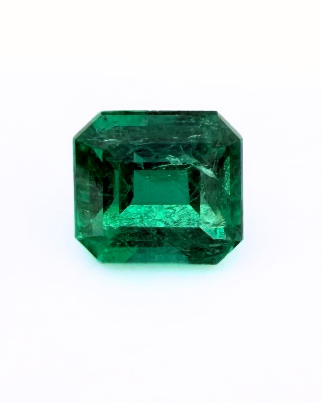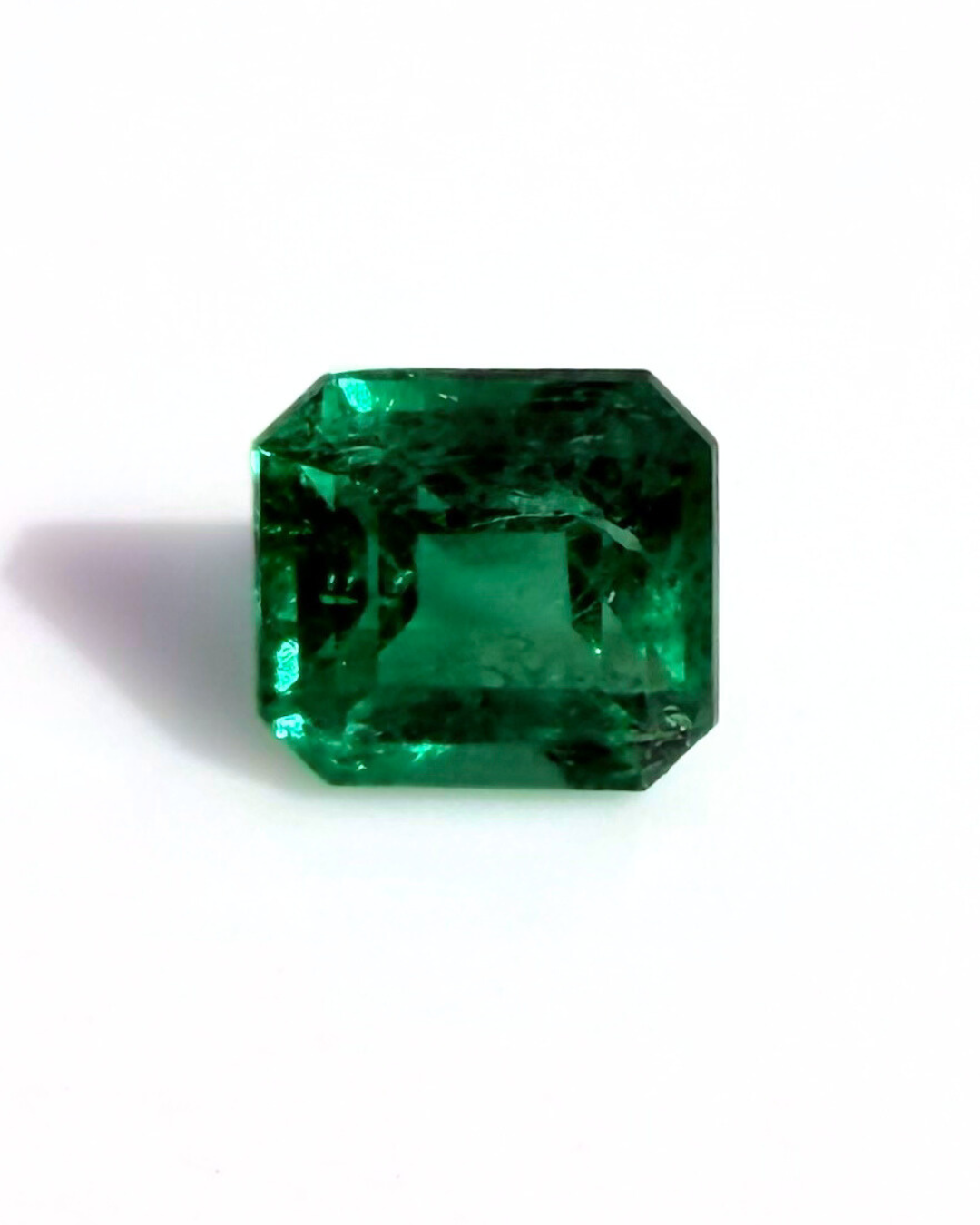 Esmeralda colombiana tallada, seleccionada cuidadosamente en origen por la intensidad de su color, su transparencia y su carácter natural.